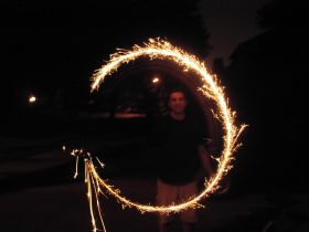 The 4th of July is a pretty cool time because I like fireworks. Though usually sparklers are not that cool, when you take pictures in low light, the exposer is long enough to capture the sparkler in motion. Here are some cool pictures we took last night.
